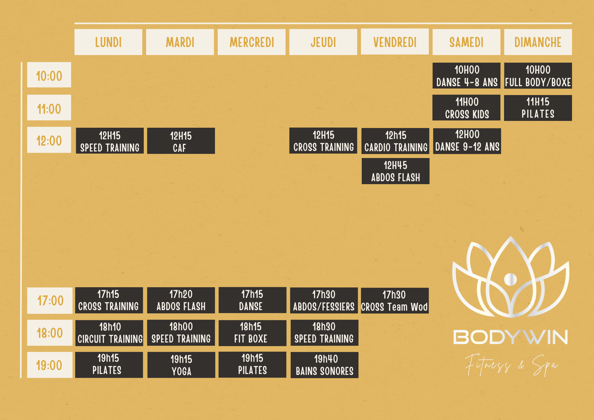 Chez BODYWIN, nos cours collectifs se déroulent en petit comité pour garantir proximité, qualité et ambiance conviviale. Chaque session est encadrée par un coach passionné, dans un environnement chic et motivant.